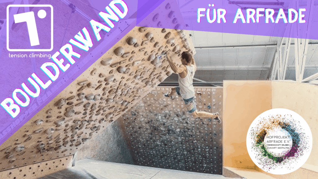 Wir wollen eine Boulder Trainingswand in Arfrade bauen. Jede*r soll rund um die Uhr die Möglichkeit haben die Wand zu nutzen, ob zum Trainieren oder zum Auszutoben unabhängig von seiner finanziellen Situation. Das bedeutet keine Kosten für Eintritt, sondern finanziert und unterhalten auf Spendenbasis. Um viel Abwechslung mit wenig Wartungsaufwand zu bieten, möchten wir ein Tension Board 2 (ähnlich dem Kilter Board) aufbauen. Dieses ermöglicht durch einen verstellbaren Winkel auch Anfänger*innen den Einstieg ins Bouldern.